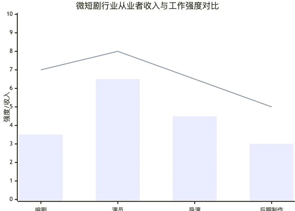 图表显示,演员群体工作强度与收入相对最高,而编剧和后期制作人员则面临工作强度与回报不匹配的情况。