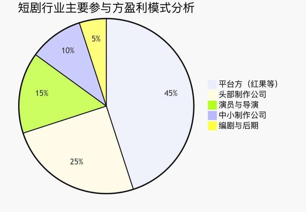 图表说明,平台方占据了短剧行业近一半的利润份额,而多数中小制作公司及基层创作者仅能分享较小比例的收益。