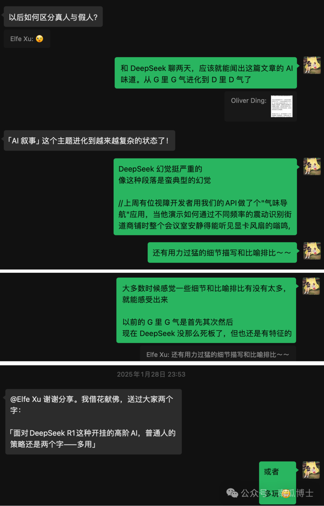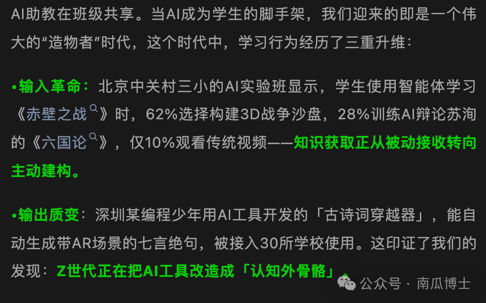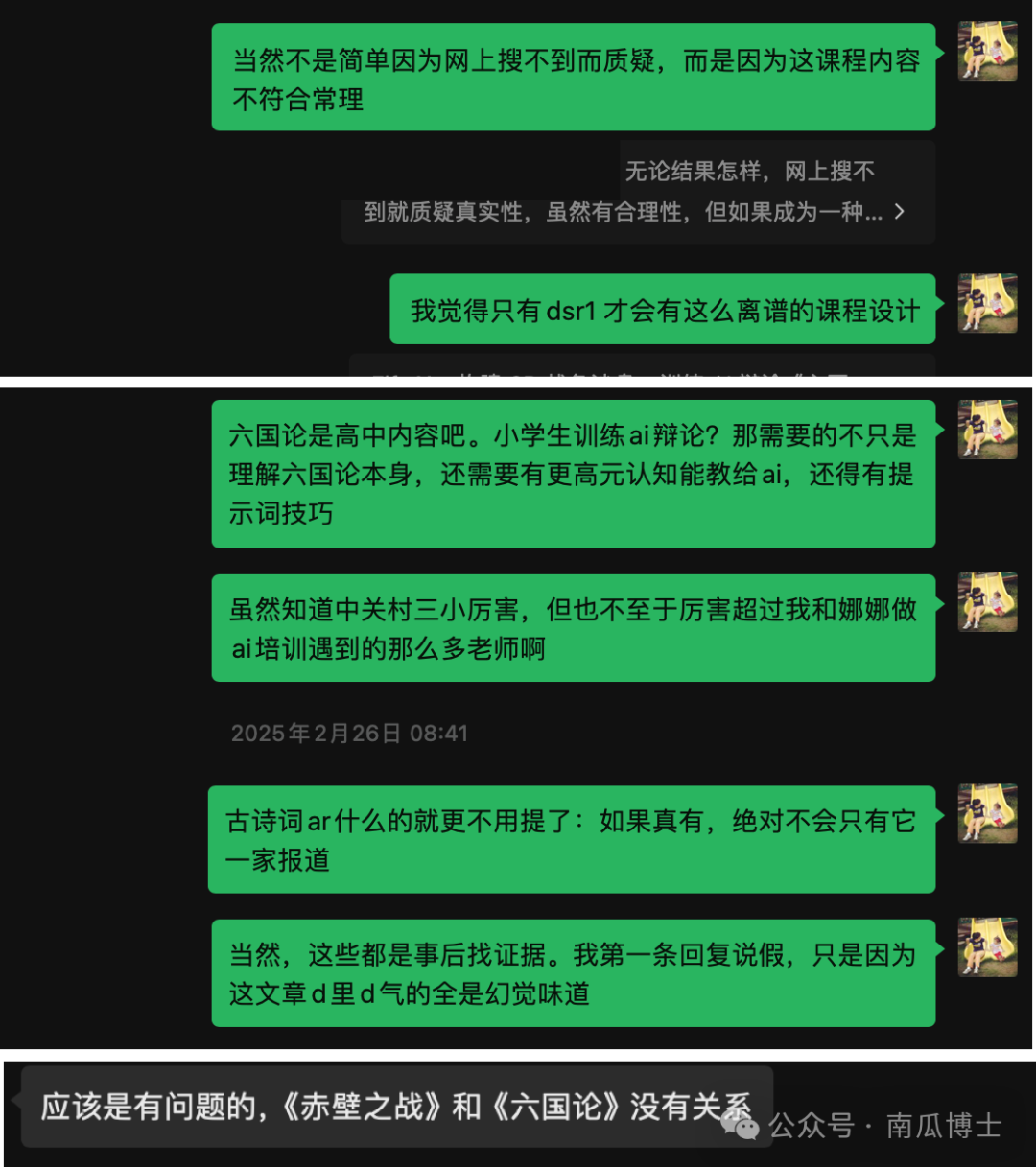 一个多月过去,似乎没再出现这类全民疯转的爆火假文章,但 D 里 D 气的内容却已渗透网络。前些天,有篇讲 AI 如何改变学习方式的文章,文中遍布“三重升维”、“输入革命”、“输出质变”这类浮夸词汇,和“认知外骨骼”这样的奇怪比喻,动辄再来个一眼假的数据证明,百分百 DeepSeek R1 生成。但这样的内容还是迷惑了好些人,我在好几个教育群都看到有转。我说这肯定是瞎编,有老师疑惑是否是内部课程没有公开才导致网上搜不到别的文章提及。我只能再事后找补列出一堆理由。老师终于仔细看了,然后说:“嗯,有问题”。转发的朋友尴尬表示自己确实没认真看。其实要不是刚巧同时在几个群里看到这篇文章,我也不会去认真读,更不会较真和群友们说那么多。但 AI 造假的可怕之处正在于此:没有认真看,信息却还是会进脑子。你不记得文中具体课程内容是啥,却还是会有“好厉害好厉害人家学校已经在课堂上把 AI 玩出了花并且实验数据证明非常效果”这样的模糊印象。试想一下如果每天你接收到的信息里有 10% 来自 AI 存在幻觉,会有什么后果?如果 20%、50% 呢?