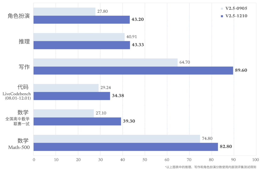 🔍 DeepSeek-V2.5-1210通过Post-Training阶段迭代,全面提升了模型在数学、代码、写作、角色扮演等领域的通用能力,展现更强大的全方位服务能力。