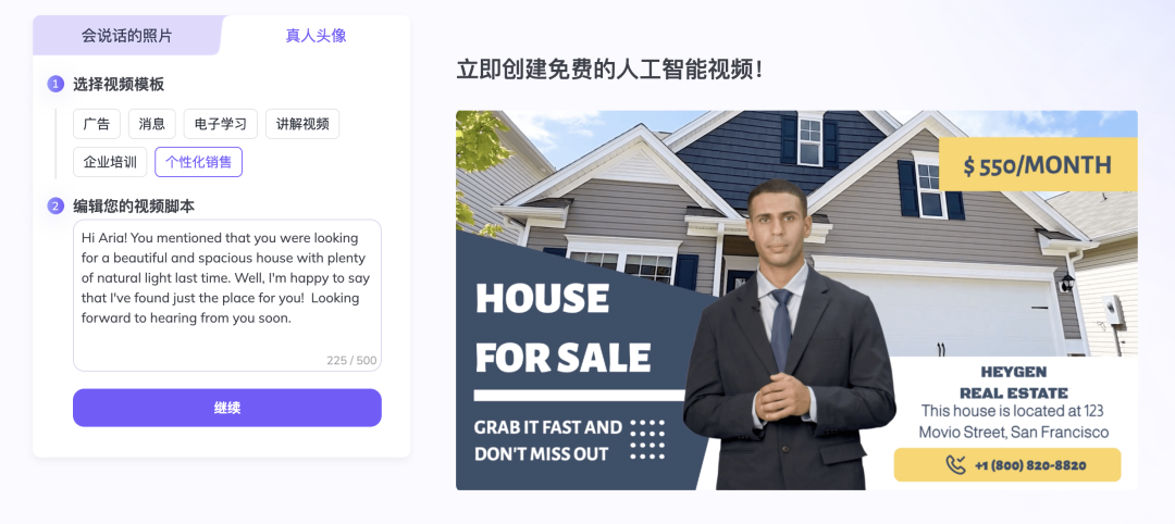 🌟HeyGen AI(原Movio)产品特点2020年成立,和Sythesia类似。主打广告营销、企业培训、讲解、销售等多个需要人物形象出镜的内容。因为更面向ToC消费者,HeyGen比起Sythesia能够体验到更多丰富的功能(需付费使用)。官网地址:https://www.heygen.com/