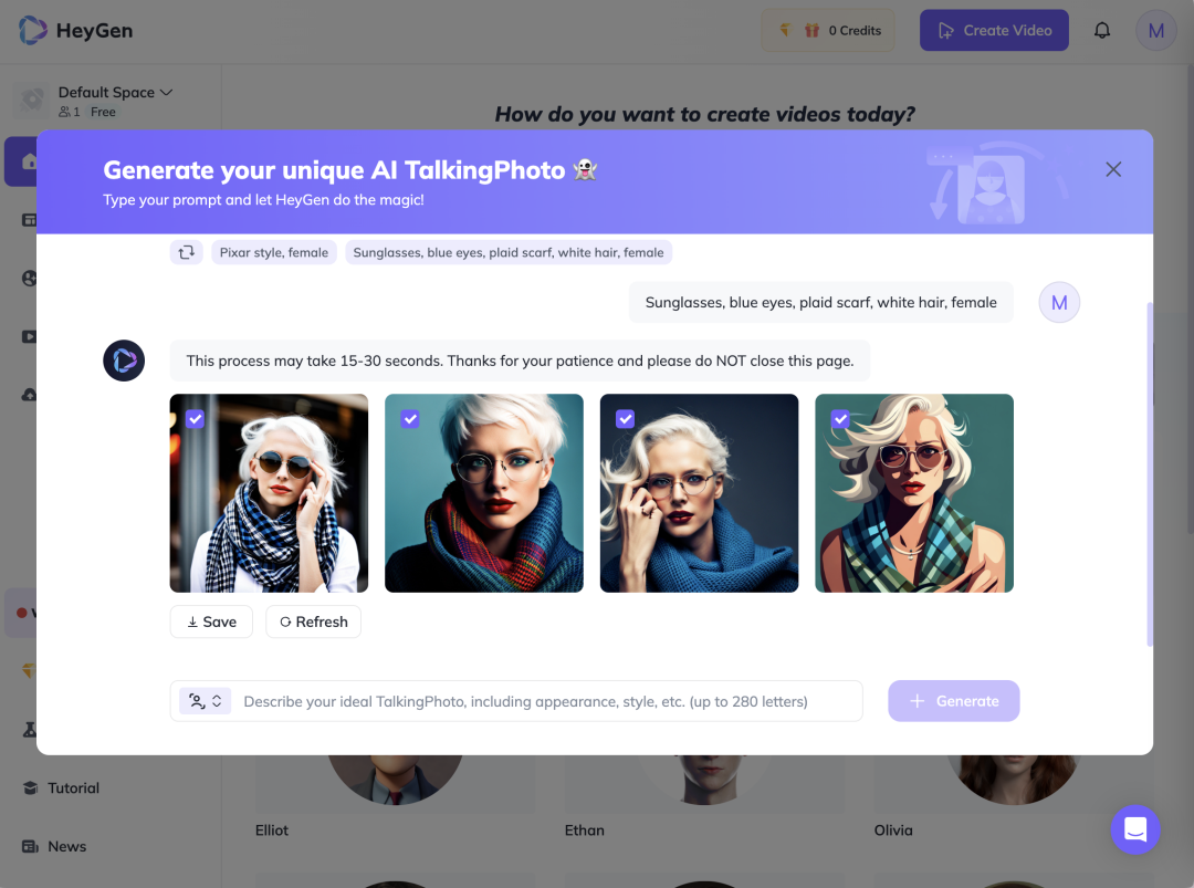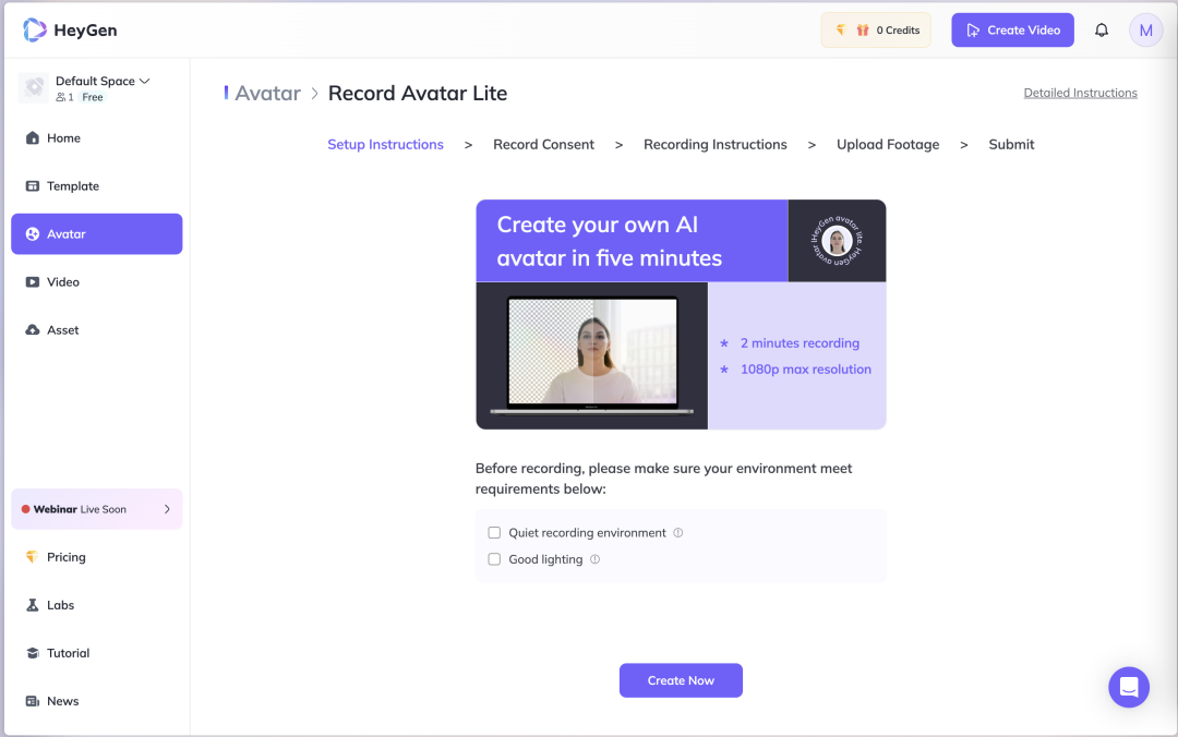 功能介绍内置100+ AI avatars ,支持40多种语言,300+ 声音,除了语音生成和对口型,这部分内容更偏模版生成。此外还可以创建个人Avatar,需录制两段5-10分钟的视频后生成。