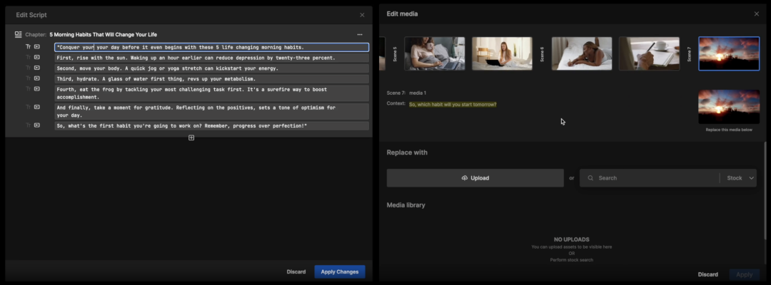 Invideo AI 脚本生成+视频匹配产品特点该产品能够在数十秒时间内轻松实现Prompt转视频,并且支持通过编辑器进行后期更改。过去类似科技、财经、资讯类重脚本内容的视频在制作时需花费大量时间寻找视频素材、还需注意视频版权问题。未来可以使用Invideo AI类的产品快速、低成本地进行视频画面制作。官网地址:https://ai.invideo.io