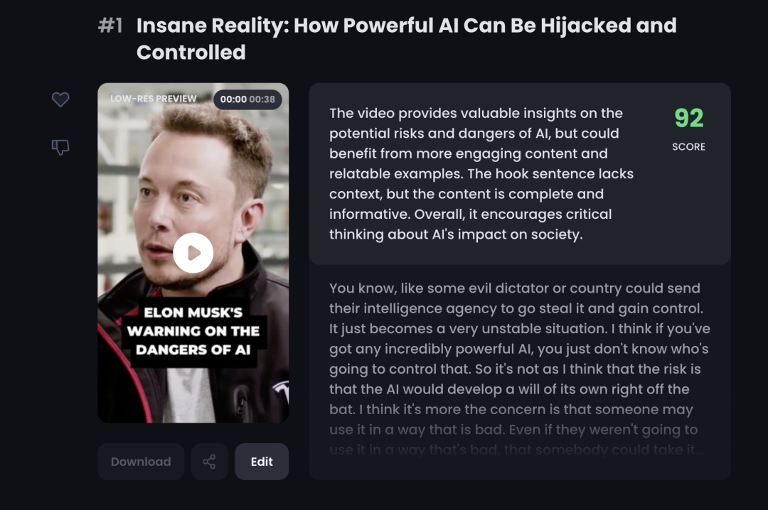 生成多段视频后,系统还会给出评分分析该视频的传播能力。