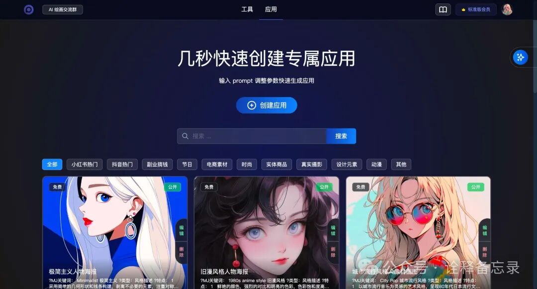 2023.09这个其实是我谋划很久的,做了大胆的创新,把模版做成了应用。那时候还没有 comfyUI,你可以理解基于 mj 生态做的 comfyui,只不过更简单化,用户不用输入复杂的提示词,简单输入他想要的就可以实现整个设计工作流。每个节点都是一个应用agent,上个 agent 的输出给到下一个 agent,现在看好像现在的「多 agent 架构」协同啊。我们先上了第一版,把单个应用上了,每个人可以创建自己的「应用」,应用可以供他人使用。