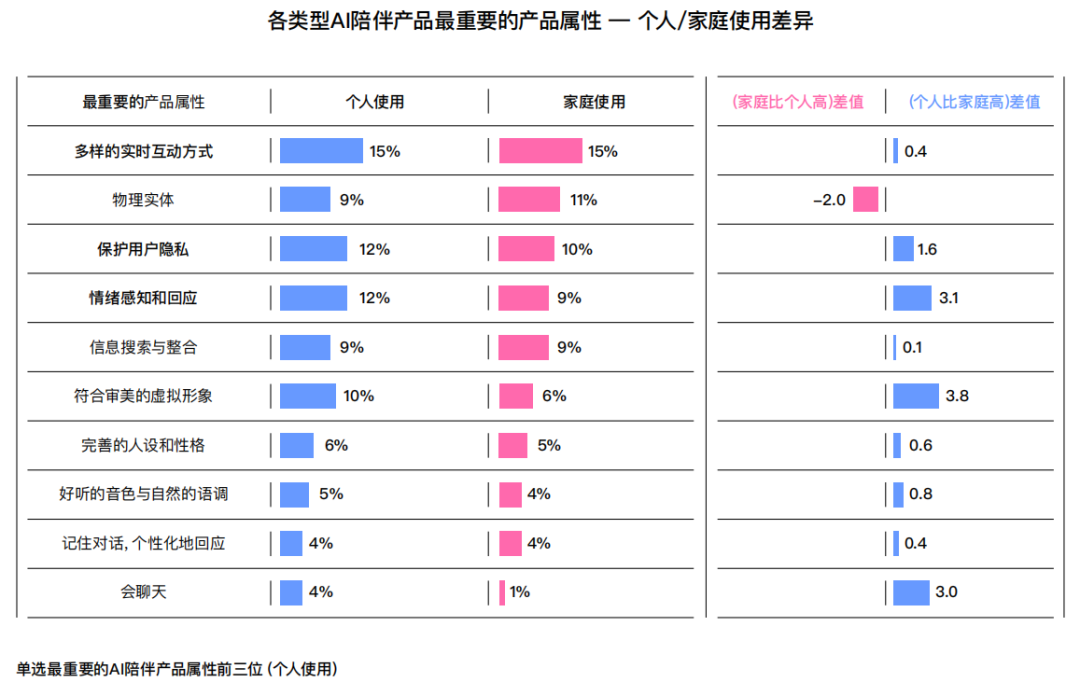 实时互动方式、隐私保护和情绪感知能力可被视为AI陪伴产品的