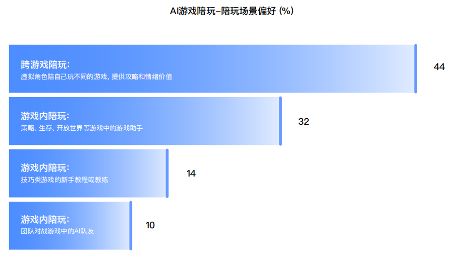 此外,对于AI游戏陪玩的产品形式,将近一半的用户(44%)会更偏向于选择