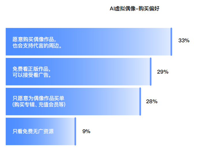 偶像经济的特点是付费能力高:超60%的用户会选择为AI偶像付费。但从长期来看,AI偶像IP是否可以长期成立是需要受到市场检验的: