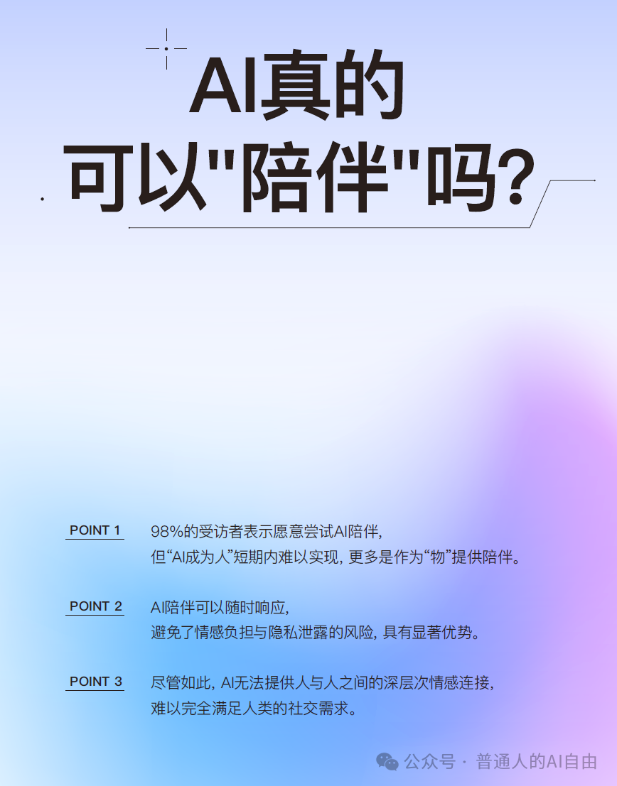 关注普通人的AI自由,后台回复关键词“AI陪伴”,获取完整报告