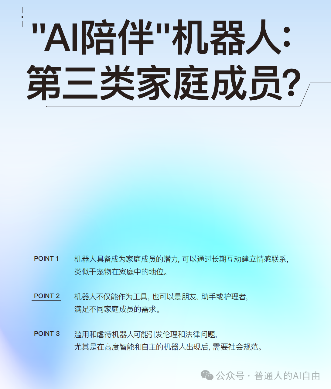 共生共存。“懂我”将是“AI陪伴”的终极追求,AI也会成为“第三类家庭成员”。
