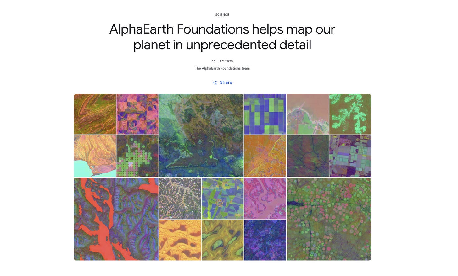 AlphaEarth Foundations: AI model integrating petabytes of Earth observation data, available through Google Earth Engine.
