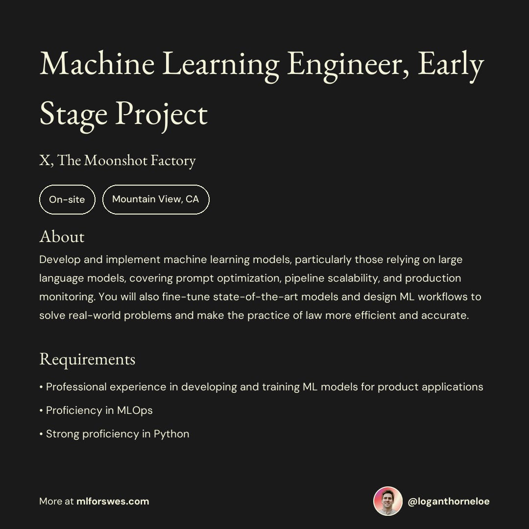 X, The Moonshot Factory - ML Engineer for early-stage moonshot projects in Mountain View