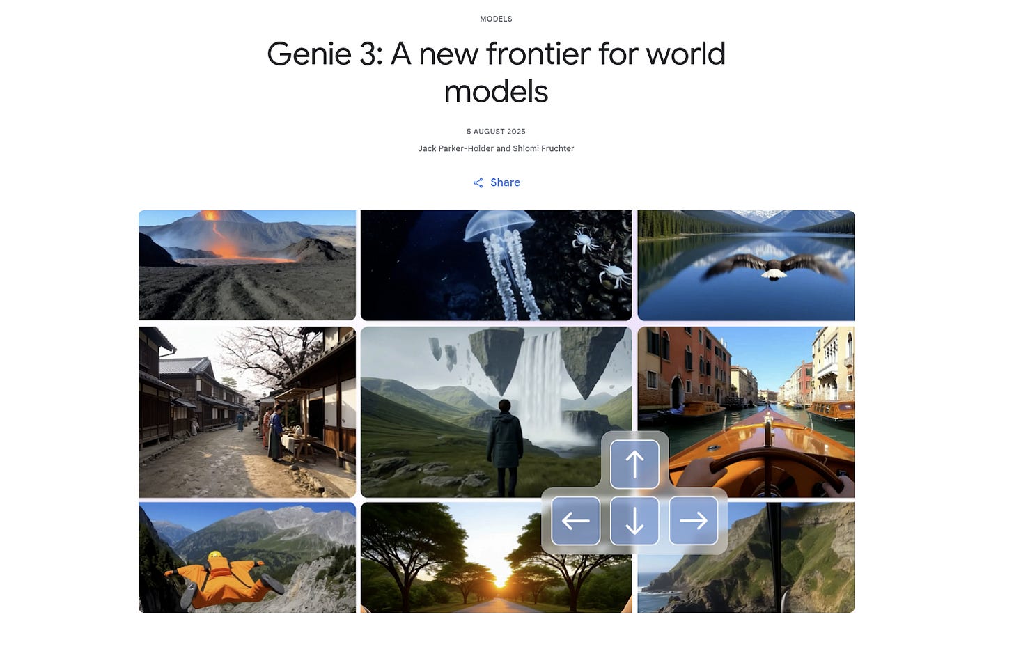 Google's Genie 3: New world model generates interactive 720p environments at 24fps from text prompts. Supports real-time user navigation and dynamic world modification. Researchers call it a "stepping stone on the path to AGI" for training AI agents.