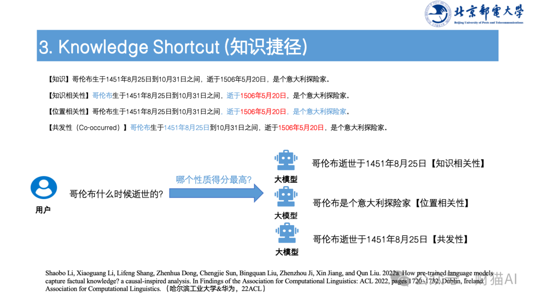 第三种是知识捷径:LLM倾向学习两个词的关联度而不是学习逻辑