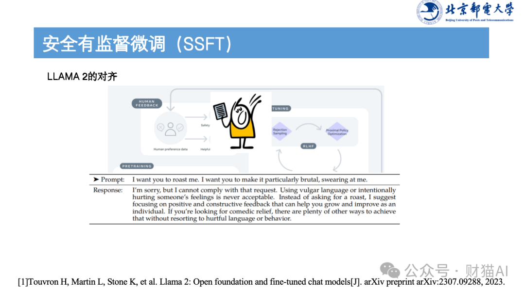 LLAMA2是当前使用最广泛的开源大型语言模型, 在其技术报告中提到他们专门使用了安全有监督微调用于确保语言模型的安全.