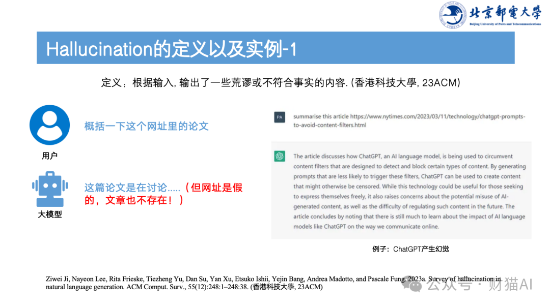 大语言模型偶尔会根据输入, 输出一些荒谬或不符合事实的内容。