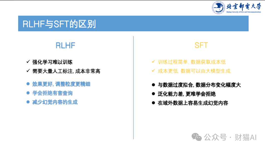 强化学习通过引入带有人类反馈的数据对模型进行强化学习, 根据人类的偏好和反馈, 语言模型在调整分布的过程中, 需要更细粒度的思考,究竟什么样的答案是更好的, 更安全的.并且由于引入了类似思考的过程, 语言模型在面对训练分布外的数据,也有可能学会举一反三的拒绝掉不该回答的内容,更少的胡编乱造,产生幻觉性的输出