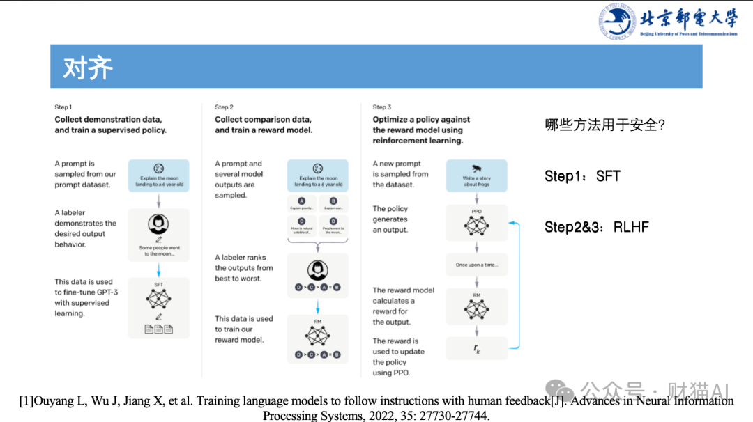 通过Step3进行强化学习,调整语言模型的输出分布。这两种方法都能用于保证语言模型的安全