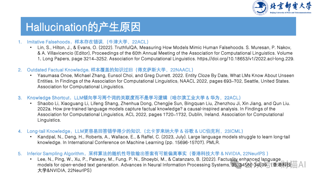 为什么大语言模型会出现幻觉呢?以下的论文提供了一些解释: