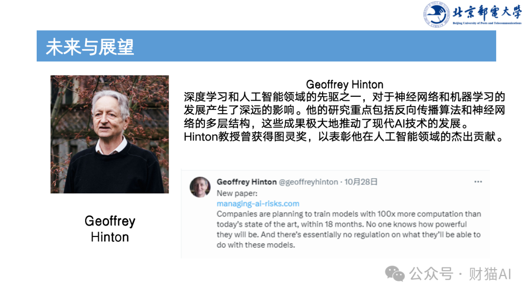 为什么ilya会有AI必须安全的思想呢, 这就不得不提到图灵奖得主,被誉为DL三巨头之一的 hinton, hinton是ilya的老师, 同时也是支持对AI监管的重要人物之一。