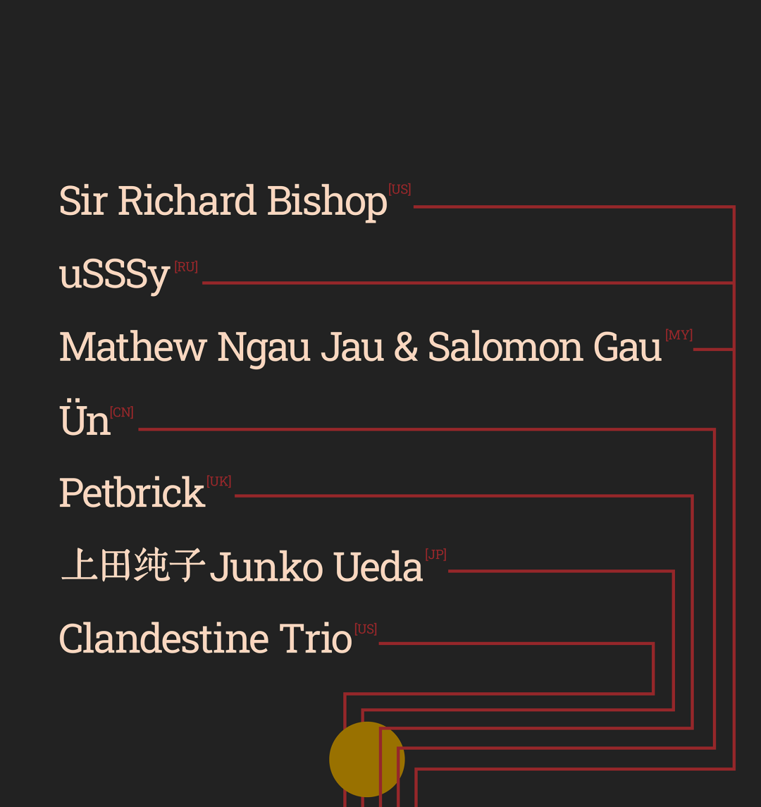 The Clandestine Trio is Alan and Richard Bishop (the two founding members of Sun City Girls) on bass and guitar respectively, and Chris Corsano on the drum kit.This will be the first festival and general public appearance of the group. The only previous appearance of this trio was at a semi-private event in Cologne, Germany, November 2017, celebrating Unrock Record's 25th anniversary. Their performance will exclusively feature the music of Sun City Girls, drawing from the band's 27-year career of mystifying sonic treasures.
