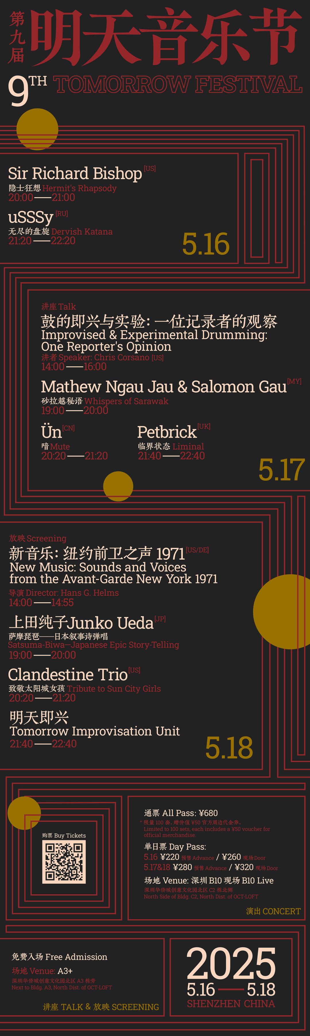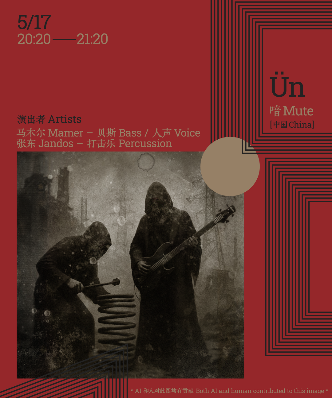 Ün, meaning "sound" in Kazakh, is transliterated into Chinese as "喑" (yīn), a character connoting silence and muteness. This paradoxical unity of opposites encapsulates the aesthetic essence of Mamer's eighth musical project. As he describes it, the new band's style will be "detached, expressionless, post-industrial, and linear". Only by immersing in the oceanic depths of sound at a live performance, can one truly grasp the layered meanings behind these descriptors. This concert will employ a quadraphonic sound system, specially arranged by B10 Live, to materialize the enigmatic phenomenon of "two individuals enveloping an entire audience", simultaneously dismantling our ingrained contradictions, myths, and prejudices through visceral sonic confrontation.