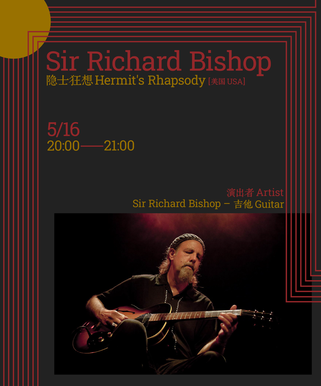 From the psychedelic underground experimentation that deconstructed rock frameworks in Sun City Girls to the transcultural explorations and radical improvisations of his solo career, Richard Bishop's guitar transcends mere instrumentation—it becomes an acoustic archaeological tool traversing time and space.Born in 1960, Richard Bishop is best known for his 26-year involvement with the band Sun City Girls and as an experimental solo guitarist whose work often reflects the shadow worlds of India, the Middle East, North Africa, and other points along the Gypsy trail.