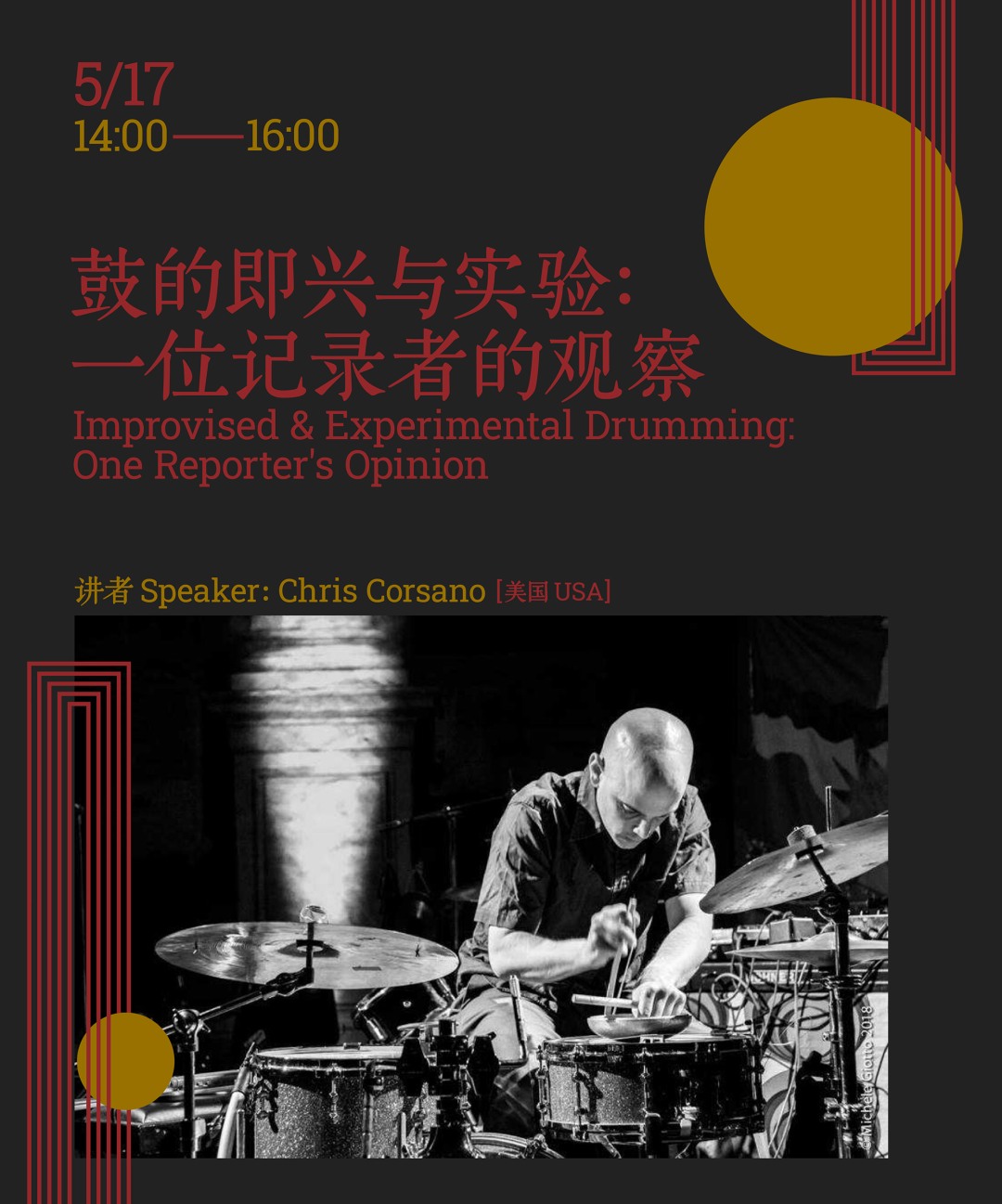 New York-based drummer Chris Corsano will present a talk on the development of the drum kit as an instrument in experimental improvised music. Speaking both from personal and historical perspectives, he will discuss the paradigm shift brought about by drummers in the 1960s like Sunny Murray and Milford Graves and the impact their playing has had on the drummers who followed in experimental jazz, rock, and other genres. Corsano will also discuss his own practice and philosophy on the cultivation of new sounds.