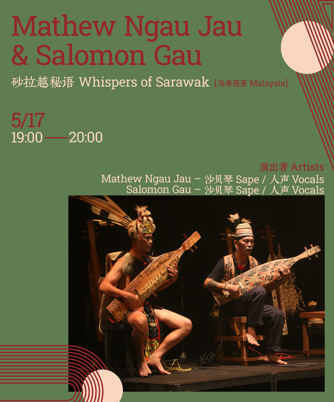 Revered as a cultural guardians among the Kenyah community, the 72-year-old sape master Mathew Ngau Jau and musician-dancer Salomon Gau from Sarawak, Malaysia, are here to unveil the mystical rhythms of Borneo's rainforest through dual sape ensemble and ancestral chanting. Both artists have garnered international acclaim for their masterful artistry. Mathew is honored as one of "Malaysia's Living National Heritage".