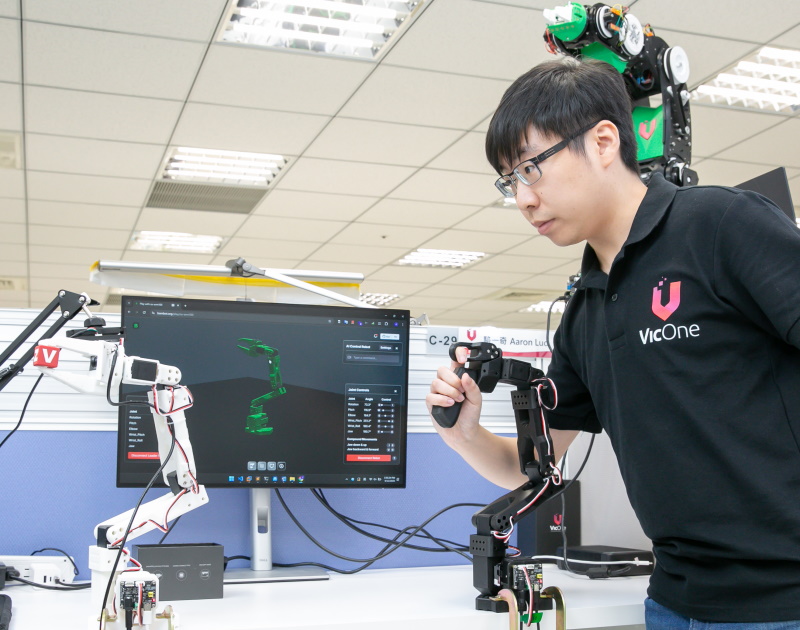VicOne LAB R7實驗室研究員駱一奇,示範利用數位雙生平臺和真人,訓練AI機器人。攝影/洪政偉