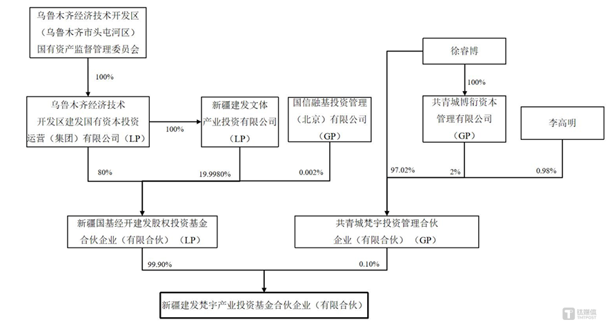笔者注意到,建发梵宇虽成立时间不长,公告显示其成立于2024年12月20日,截至披露日尚未开展实际经营,但其背后的控制方却实力不俗。经股权穿透,建发梵宇的实控人为乌鲁木齐经济技术开发区(头屯河区)国资委。