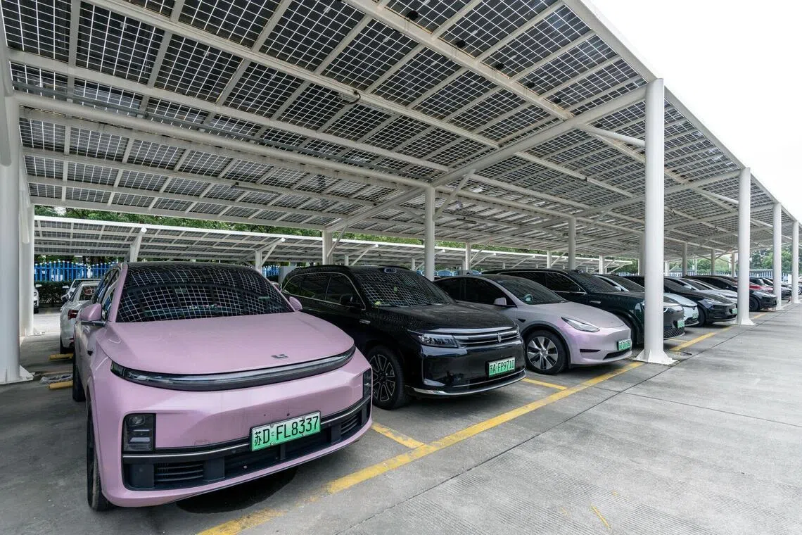 中国宣布明年起对纯电动乘用车实施出口许可证管理。图为在江苏常州一个地点充电的电动汽车,摄于9月26日。 (彭博社)中国宣布明年起对纯电动乘用车实施出口许可证管理。