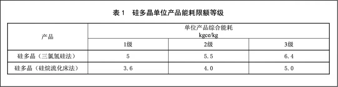 仅过了一个半月,9月16日,国家标准化管理委员会就《硅多晶和锗单位产品能源消耗限额》等3项强制性国家标准公开征求意见。其中,新标准将三氯氢硅法(棒状硅)1级、2级、3级能耗标准分别设定为5kgce/kg、5.5kgce/kg、6.4kgce/kg,相比现行标准的7.5kgce/kg、8.5kgce/kg、10.5kgce/kg大幅降低,也要低于严大洲公布的数据。