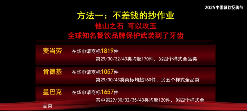 第一个方法是“抄作业”。我们去了解一下麦当劳、肯德基、星巴克这几个巨头是怎么保护商标的。