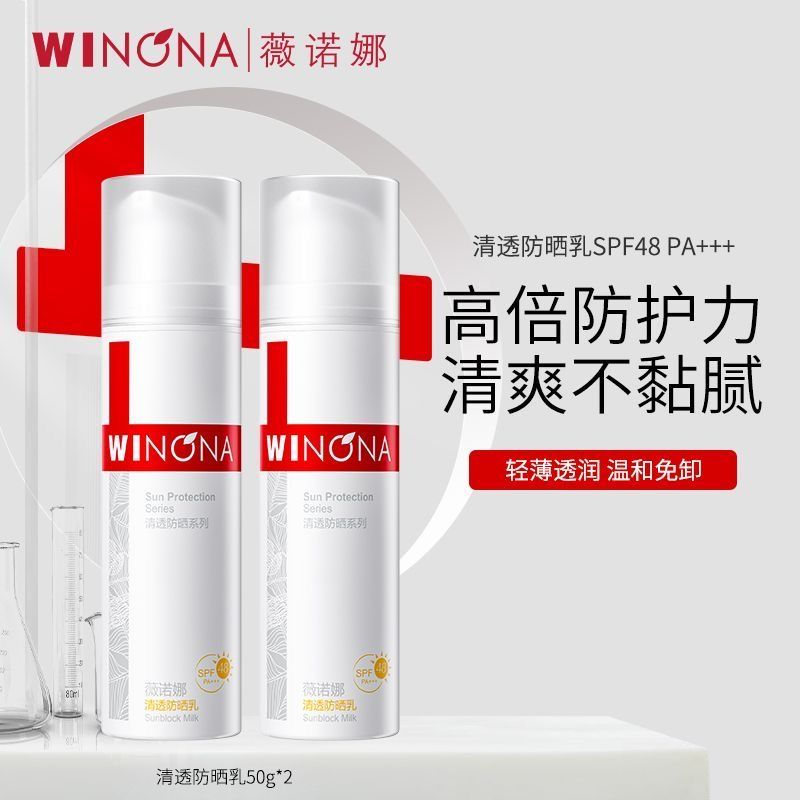 WINONA薇诺娜清透防晒乳SPF48 PA+++50g正装+2g小样限时特惠来袭!这款专为敏感肌研发的防晒乳质地轻盈不油腻,清爽透气成膜快,有效抵御紫外线伤害,温和不刺激,日常通勤或户外活动都能轻松应对。