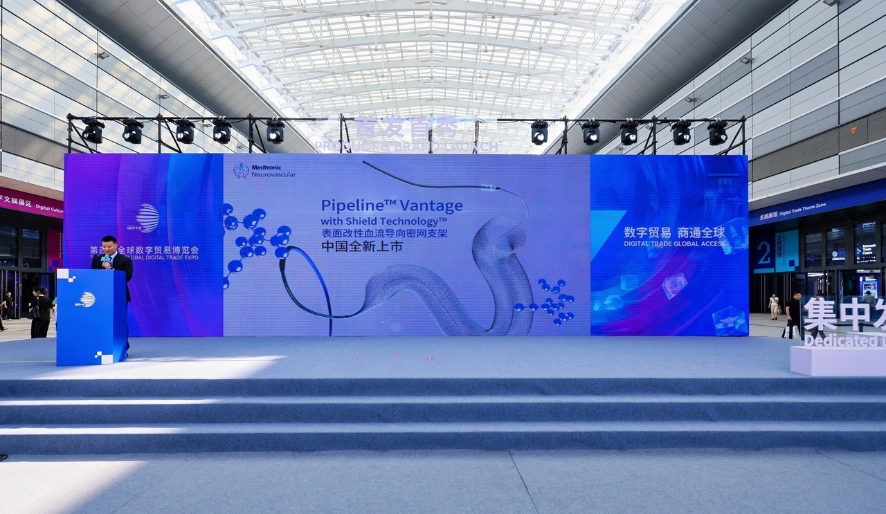 全球数字贸易博览会组委会供图9月26日,在第四届全球数字贸易博览会(以下简称“数贸会”)这一汇聚全球新品首发、首展的国际舞台上,医疗科技巨头美敦力再次亮相,并带来其最新获批的第四代Pipeline™ Vantage with Shield Technology™表面改性血流导向密网支架(以下简称“Pipeline™ Vantage”),这也是该产品获批后的首次公开展示。