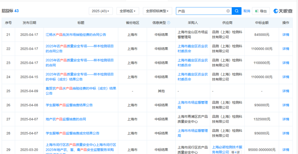 根据中标情况,我们不难发现,品测检测主要经营校服、农产品、水产品等产品的检测。这也意味着,张国华兄妹二人其实一直扮演着既当裁判又当选手的角色。