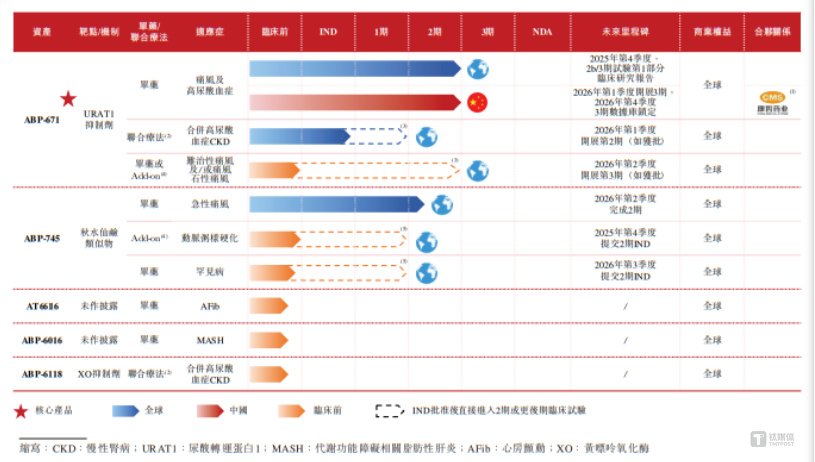 在这些产品中,ABP-671进展最快,已进入3期阶段,有望成为管线中首个实现商业化的产品。需要说明的是,ABP-671是最佳瞄准一线治疗市场的URAT1抑制剂,瞄准以痛风和高尿酸血症为代表的代谢疾病领域。
