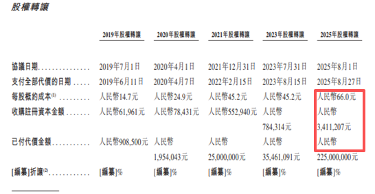 笔者注意到,在新元素全力冲击港股IPO的关键节点,一则股东股权转让消息引发市场广泛关注与疑惑。据悉,该股东在新元素提交港股IPO申请的前一个月选择了套现离场,而对比其当初入股价格与此次转让价格可发现,两次交易的股权价格完全一致,均为66元/股。这意味着该股东在持有新元素股权期间,未从股权价差中获得任何收益,这种“平价转让”行为,与IPO前夕股东通常选择“待价而沽”、等待公司上市后股权增值再离场的常规逻辑形成鲜明反差。