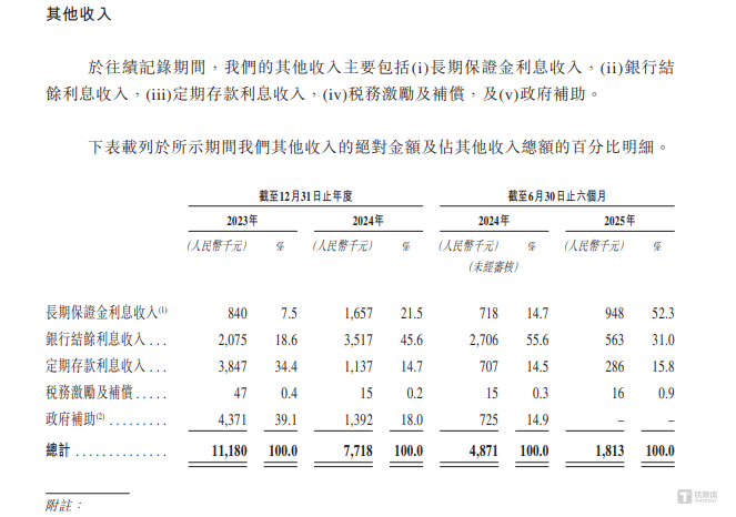 2023年-2024年和2025年1-6月(下称“报告期”),新元素分别实现营业收入1118万元、771.8万元、181.3万元,年内溢利分别为-9723.9万元、-43464万元、-16490.6万元,公司持续在亏损,尚未跨越盈利的门槛,两年半合计亏损了69678.5万元。需要说明的是,新元素上述的收入主要是其他收益,而其他收益又主要依靠政府补助、利息等,公司目前无任何产品商业化。