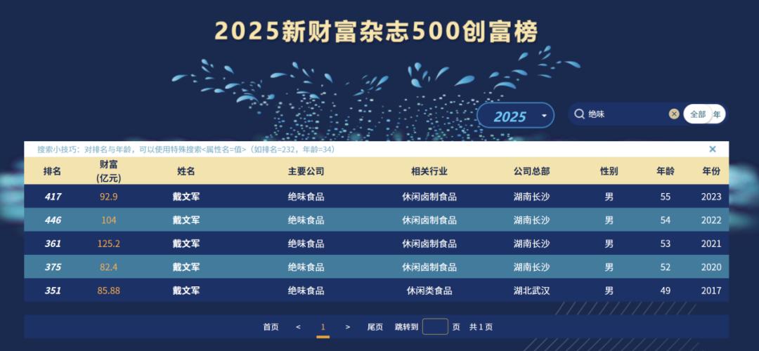 鸭脖事业的成功,也让戴文军积累起了不菲的财富。新财富杂志500创富榜显示,2021年戴文军身家达125.2亿元,2023年,戴文军身家缩水至92.9亿元。
