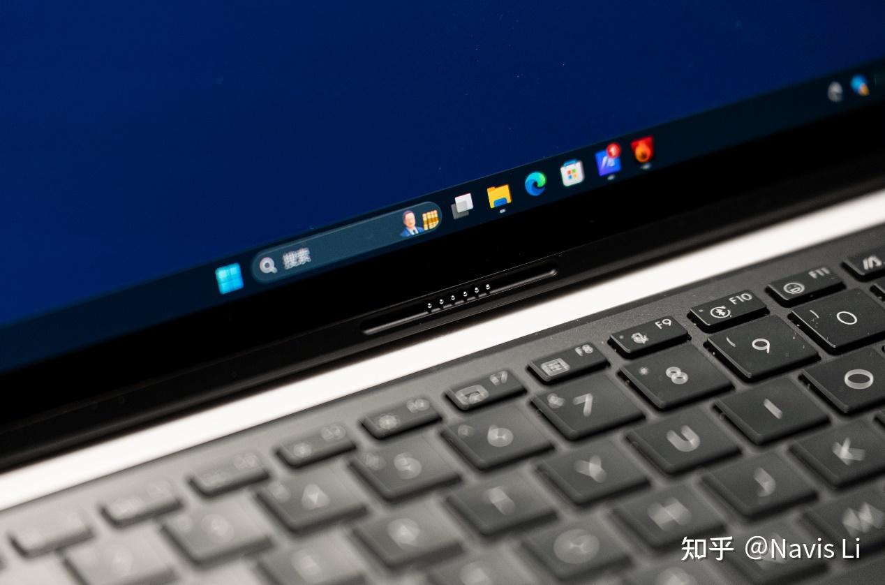 而这么设计的目的,因为灵耀的键盘采用的是磁吸蓝牙设计,在机身边框四周有一圈磁铁,它可以和键盘上的磁铁互相吸引,只要把键盘靠近下方的屏幕,它们就会自动对准,然后让键盘和机身上的弹簧针脚成功连接。