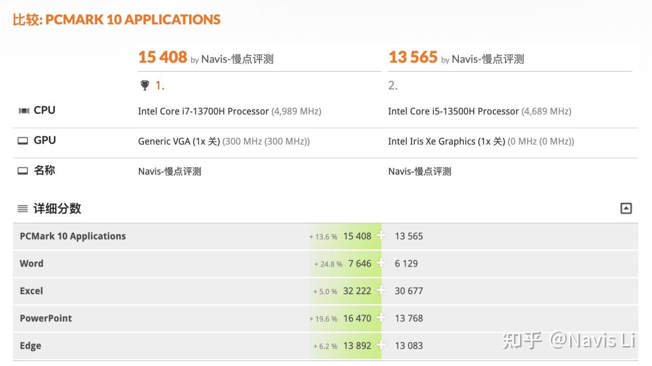 P28虽没有H45性能强,但即便是上一代i5-1240P 在PCMARK 10应用程序测试中也能取得一个不低的成绩,OFFICE 三件套、Edge 的加载都有很快的相应速度,所以基本上13代P28 的效率只会更高。所以如果你大部分时间都是与三件套接触的话,那i5-1340P 就基本能够胜任。