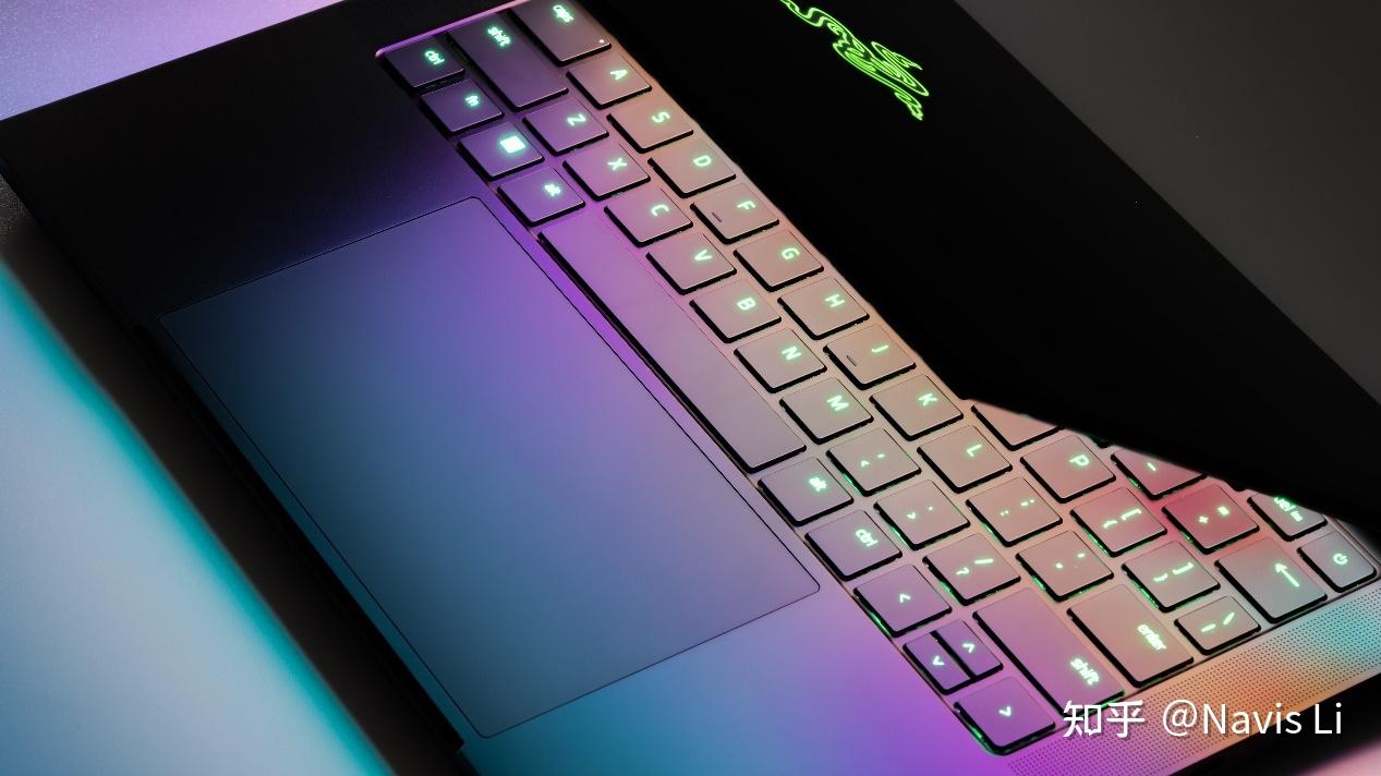 键盘的最大亮点就是支持单键RGB 调节,可以在RAZER CHROMA 中自定义风格,这一代的触控板可见的更大了,是少见的超级大的那种,在使用时会更加无拘束,触控也很顺滑。