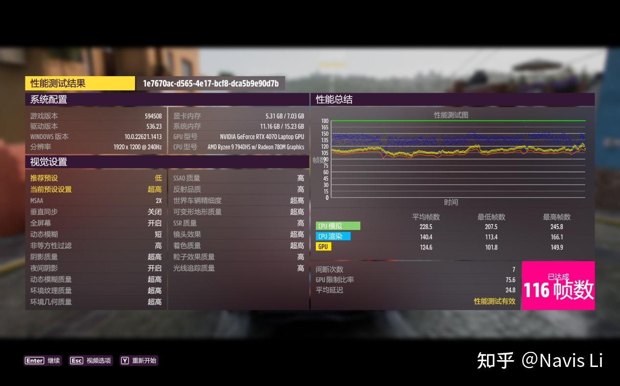 首先是竞速来游戏极限竞速地平线 5,在FHD 超高画质下,可以做到116FPS 的水平,而在QHD 下也能做到84FPS 流畅级别。