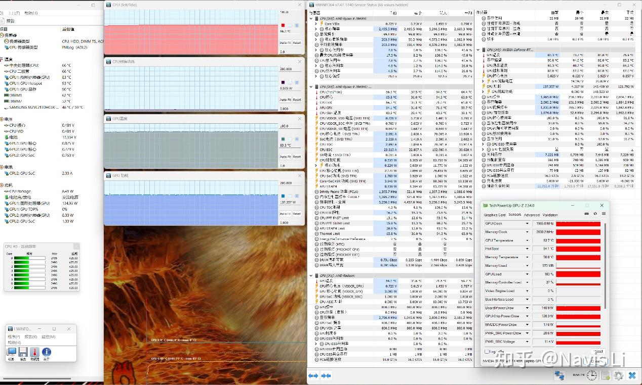 再来看极限烤机情况(25°C室温),本机显卡为RTX 4070,单拷可以做到140W功耗,GPU频率为1965MHz,温度为83°C。