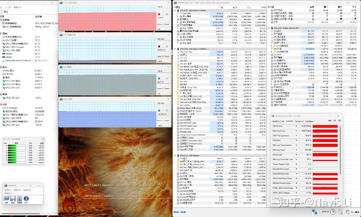 双烤时,可以做到CPU 20W+GPU 125W 整机145W的水平,CPU 和GPU 的温度并不是很高。
