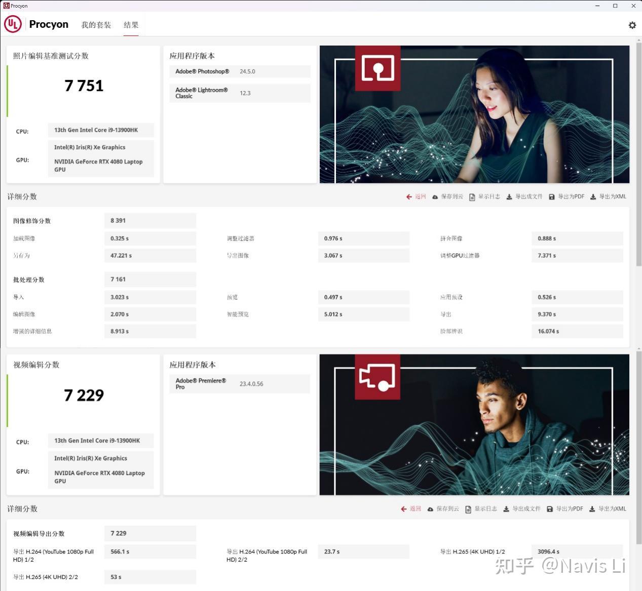 最后再来看看有设计和剪辑需求的用户,ZBook Studio 转为移动工作站是通过了ISV专业认证的,在Adobe全家桶等生产力应用中有特别的优化加速,运行也会更加的稳定。实测Procyon图像修饰它可以做到8391,视频编辑的表现同样不俗,达到7229,所以即便你有重负载的图片编辑或是视频剪辑需求,ZBook Studio 都能比较快速的完成。