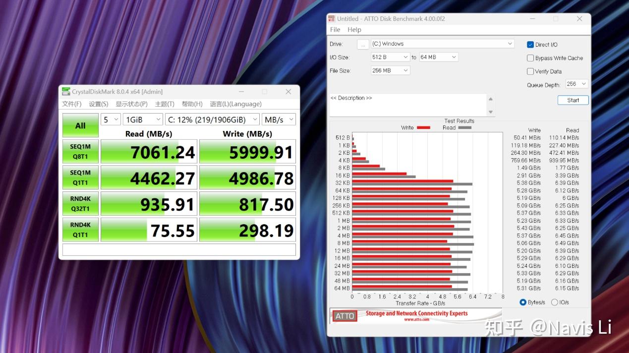硬盘方面仅有1个M.2硬盘位,揭开散热铜板就能快速更换,我手中这台硬盘来自铠侠2TB 版,实测速率如下: