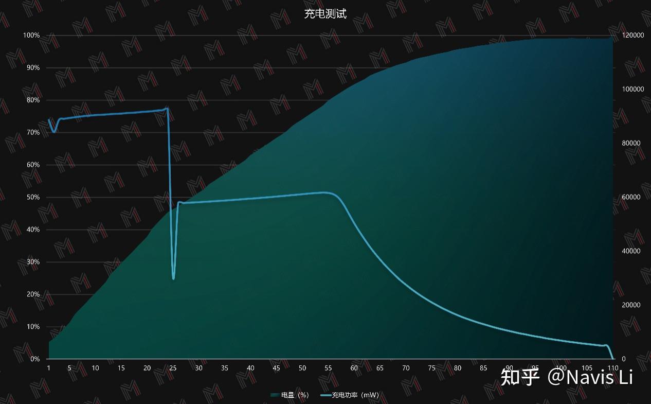 最后是快充,前25分钟可以做到90W以上的输入,后续至1小时也能维持在60W以上,充至50% 仅需半小时,80% 也仅为55分钟,快充的表现还可以。